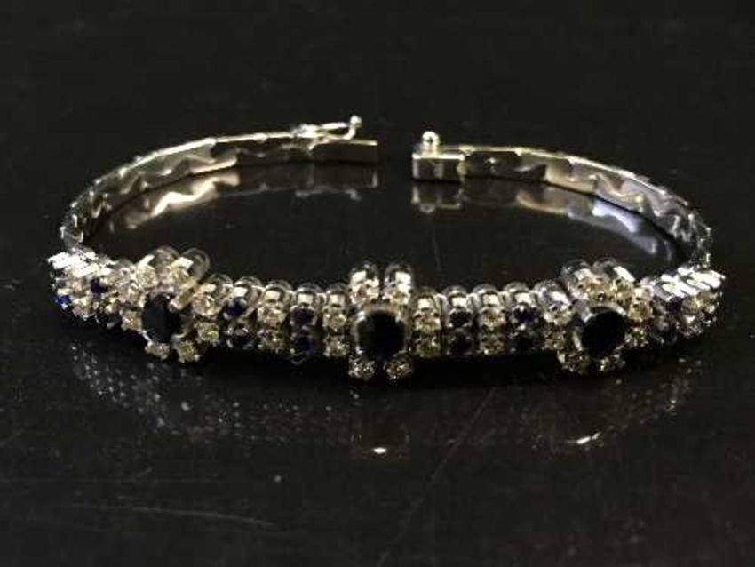 A sapphire and diamond bracelet set in white gold, diamond weight estimated at 1 carat, 23.8g