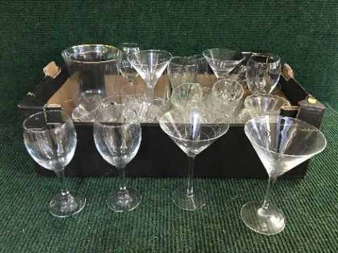 Two boxes of glassware, together with a yard of ale glass