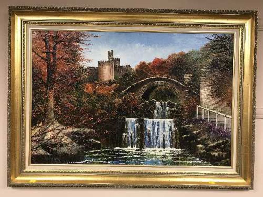 Dallas K. Taylor : A waterfall, oil on board, signed, framed.