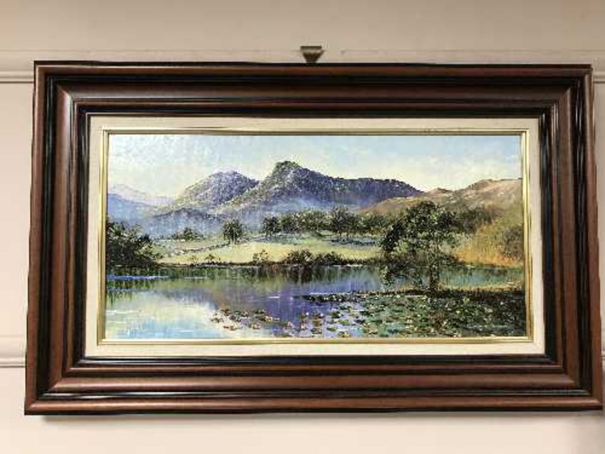 Dallas K. Taylor : Mountainous Landscape, oil on board, signed, framed.