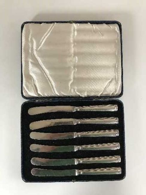 A set of six cased silver handled knives, Sheffield by James Deakin and sons