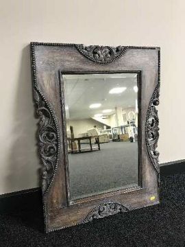 A carved oak framed Edwardian mirror