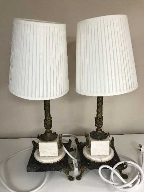 A pair of continental marble ormolu mounted column table lamps (2)