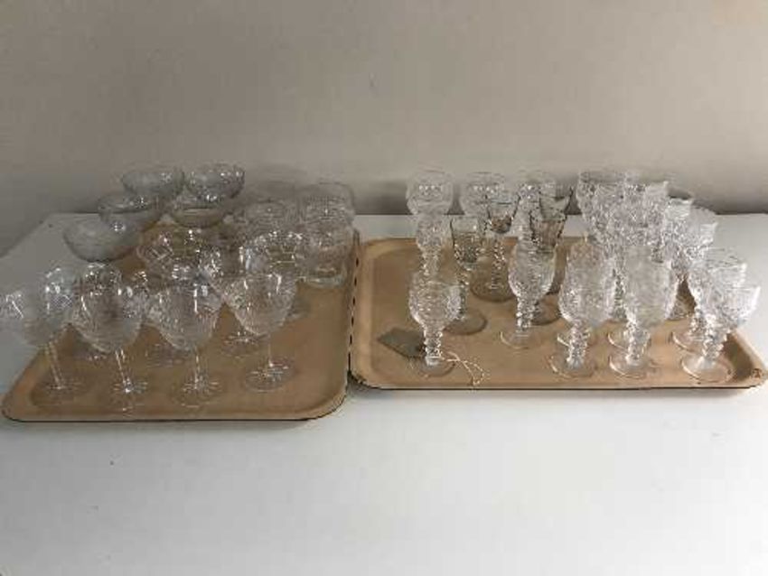 Two trays of lead crystal drinking glasses