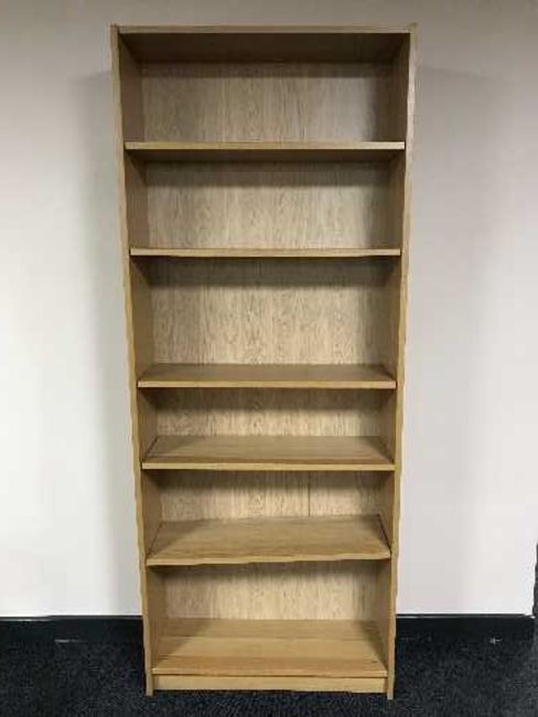 A set of open bookshelves