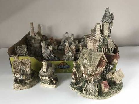 A box of eleven David Winter cottage ornaments