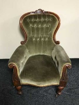 A Victorian mahogany armchair in button fabric