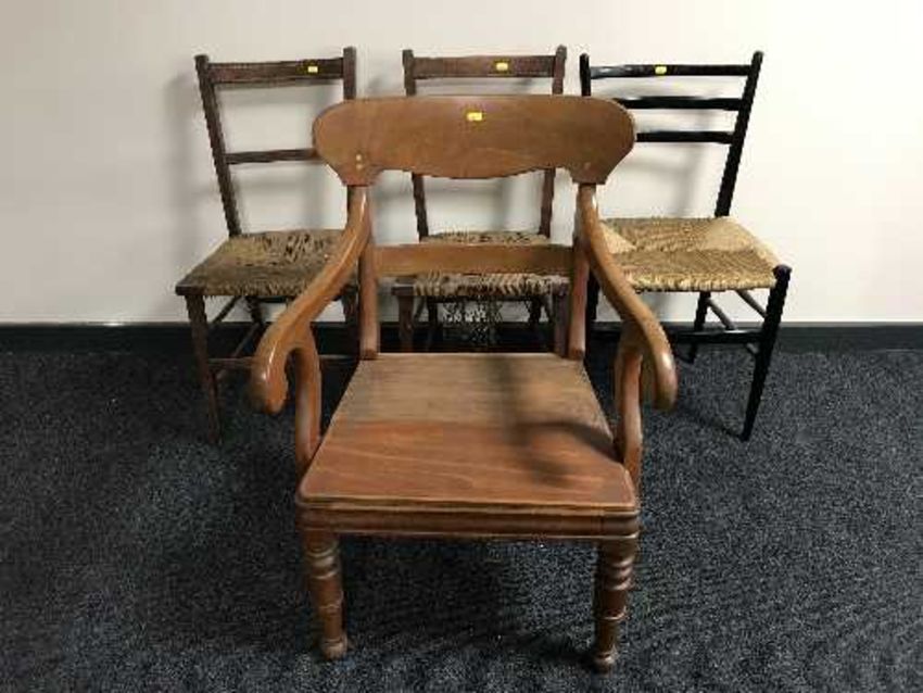 A mahogany armchair, pair of Victorian bedroom chairs and one other chair