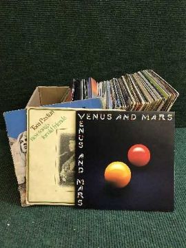 A box of LP records - Tom Paxton, Bruce Spingsteen etc