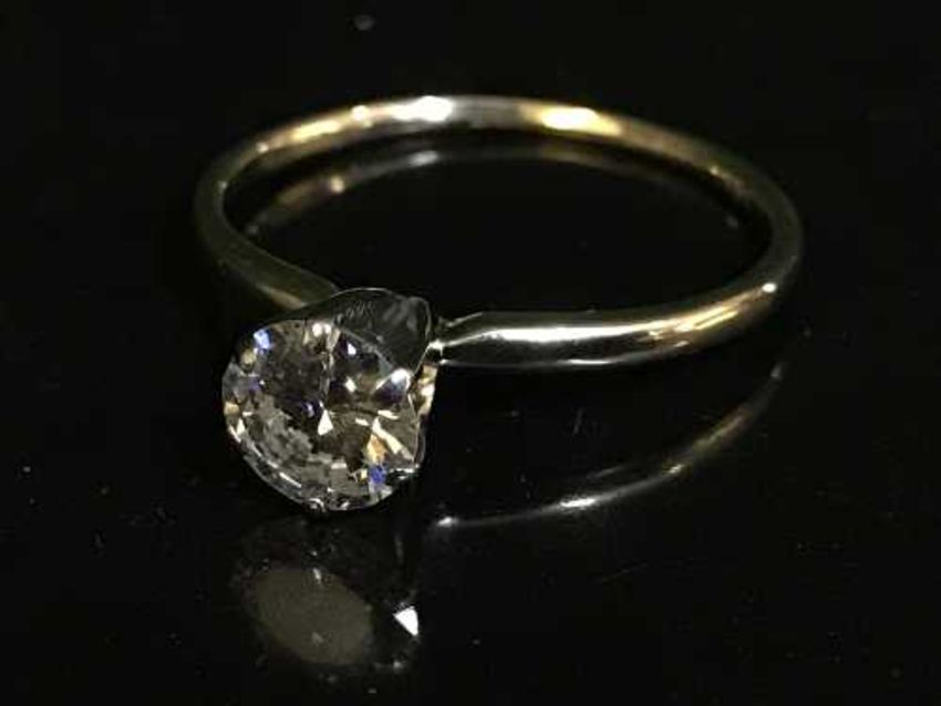 A 14k solitaire diamond ring, approximately 0.9ct, colour H/I, Vs2, ring size N/O.