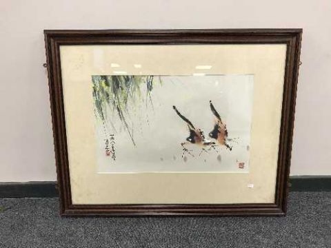 Chinese school : A study of two birds, watercolour, 66 cm x 42 cm, framed, signed.