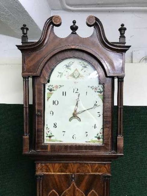 A 19th century inlaid mahogany long-cased clock with painted dial