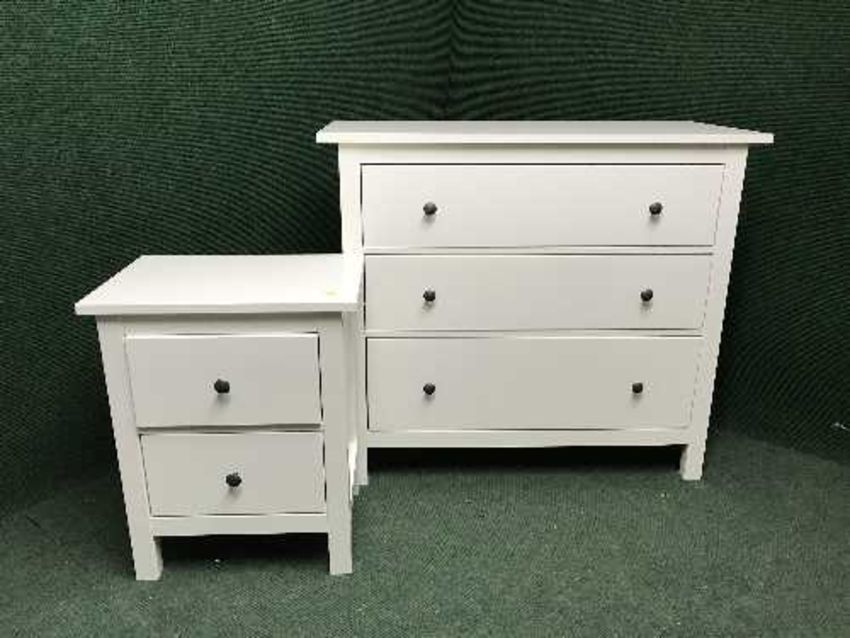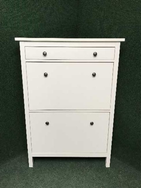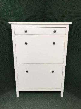 A Ikea three draw chest, bedside chest and shoe cupboard