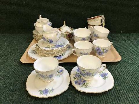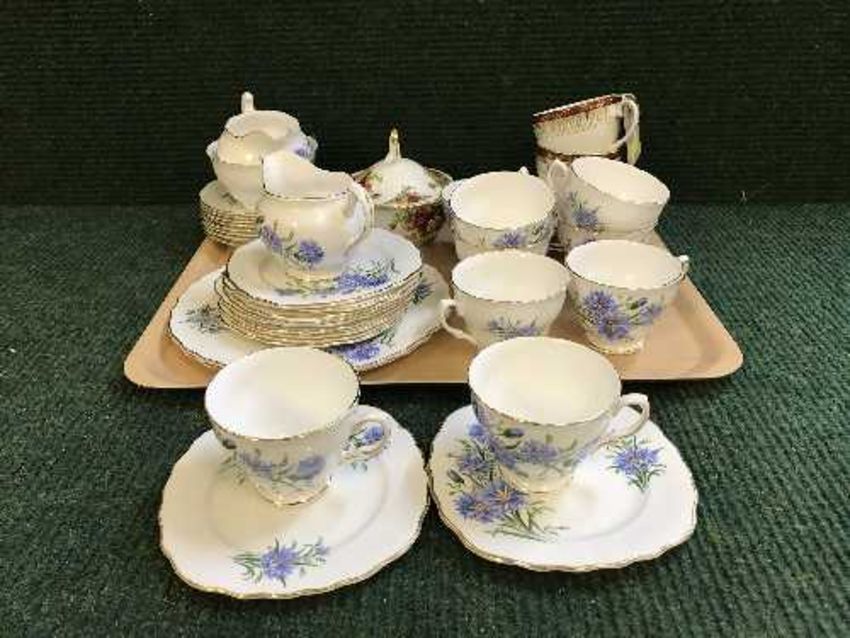 A tray of Royal Grafton Majestic tea china, Old Country Roses dish and cover, Royal Vale china etc