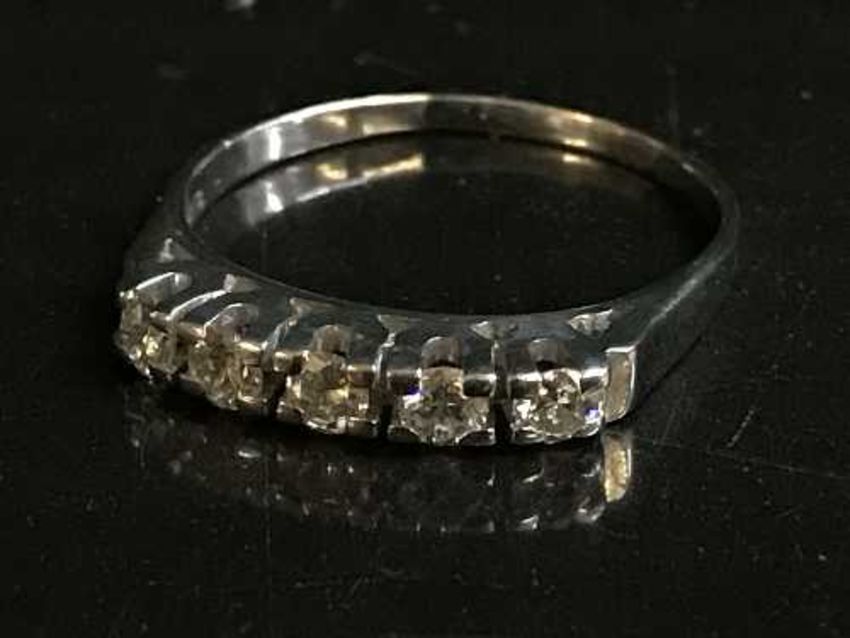 An 18ct white gold five stone diamond ring