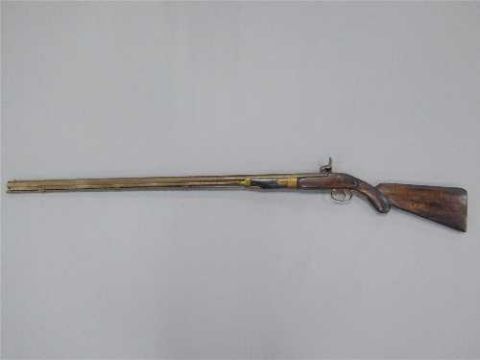An early 19th century percussion cap sporting gun, with 91cm barrel, the lock stamped with a crown and a rampant lion, walnut stock and steel ramrod.