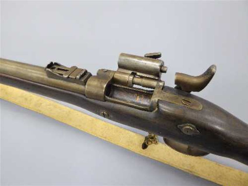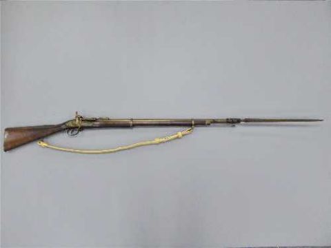 A good Victorian 1862 Snider Enfield percussion two-band musket, with 75cm barrel, walnut stock, steel ramrod, socket bayonet and shoulder sling.
