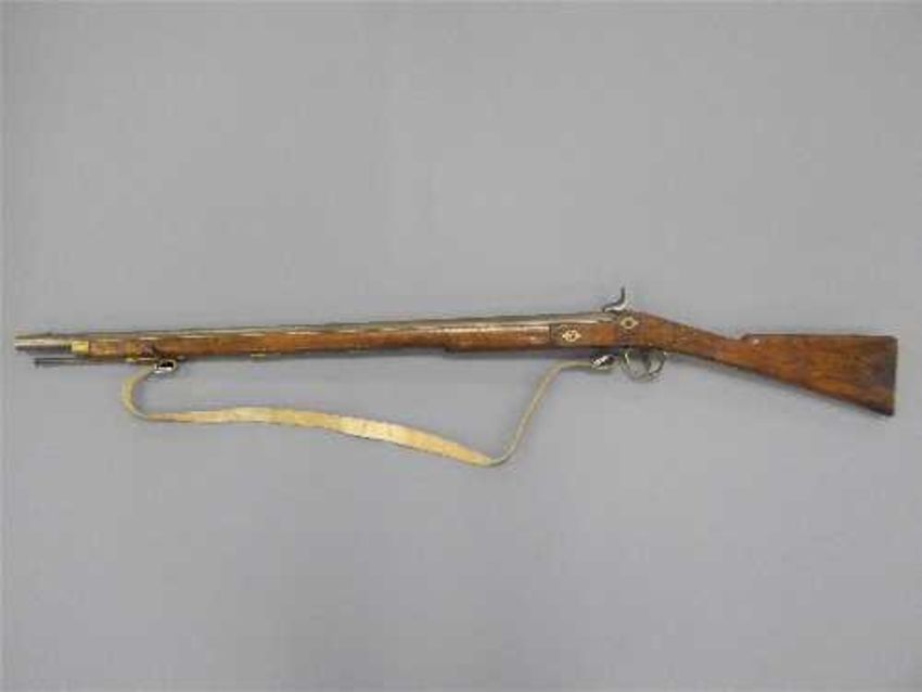 An early 19th century Tower percussion cap musket, the 84cm barrel with proof marks, with walnut stock, cord sling and steel ramrod.