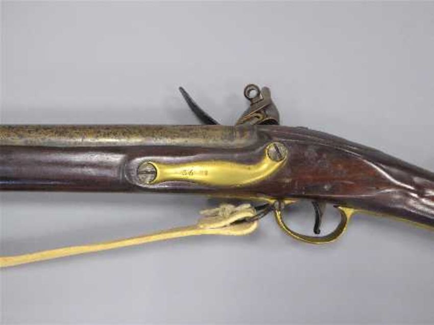 A George III flintlock India Pattern Brown Bess musket, the 100cm barrel with proof marks, the lockplate stamped TOWER and crown over GR, the walnut stock stamped 1814, with steel ramrod, sling and socket bayonet.