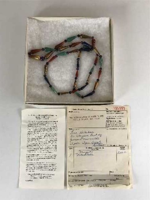 A late 20th century gemstone necklace with original purchase receipt from the Metropolitan Museum of Art, New York