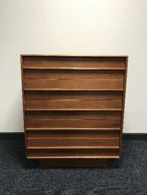 A teak five drawer chest