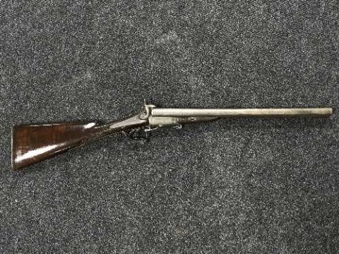 A 19th century percussion cap double-barrelled sporting gun, with 51cm breach-loading barrels, engraved lock, swept trigger guard and walnut stock.