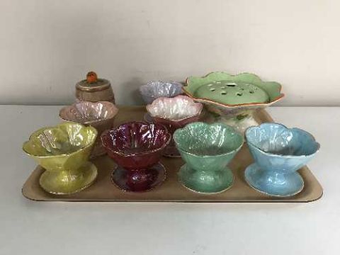 A tray of seven assorted Beswick and Maling grapefruit dishes, Corona Ware flower vase and a Governcroft preserve pot