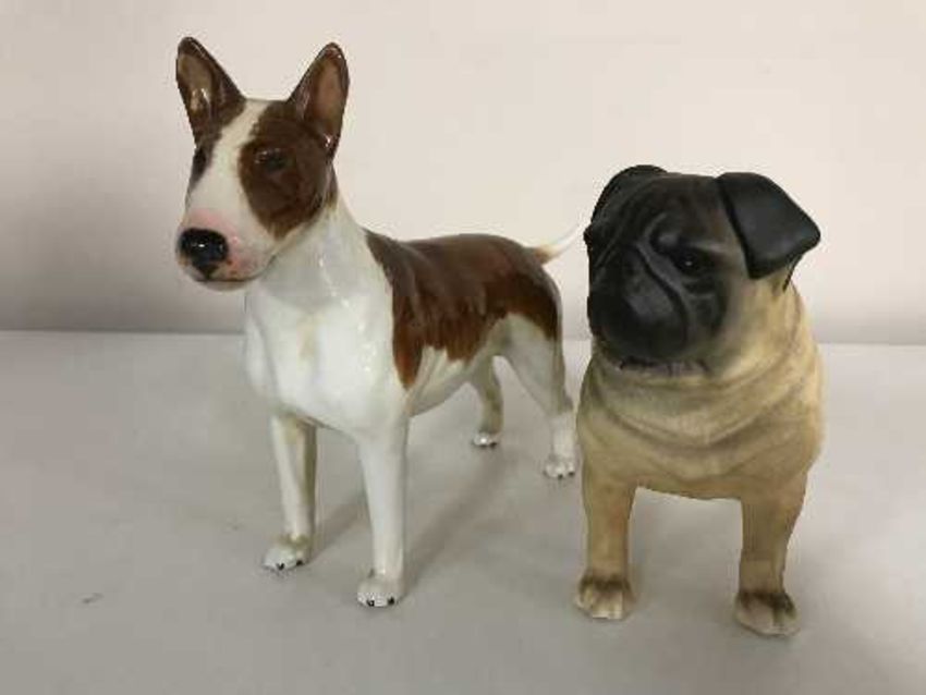 A Beswick figure of a pug, matt finish, a Beswick figure - American bulldog, gloss finish
