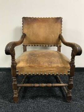 An antique carved oak armchair