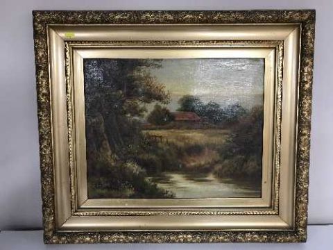 A gilt framed oil on canvas by A. Roddam - rural landscape