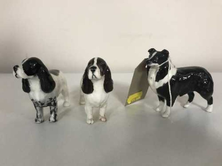 A Beswick sheepdog and two spaniels