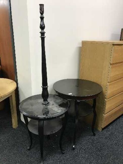 A circular lamp table and an occasional table