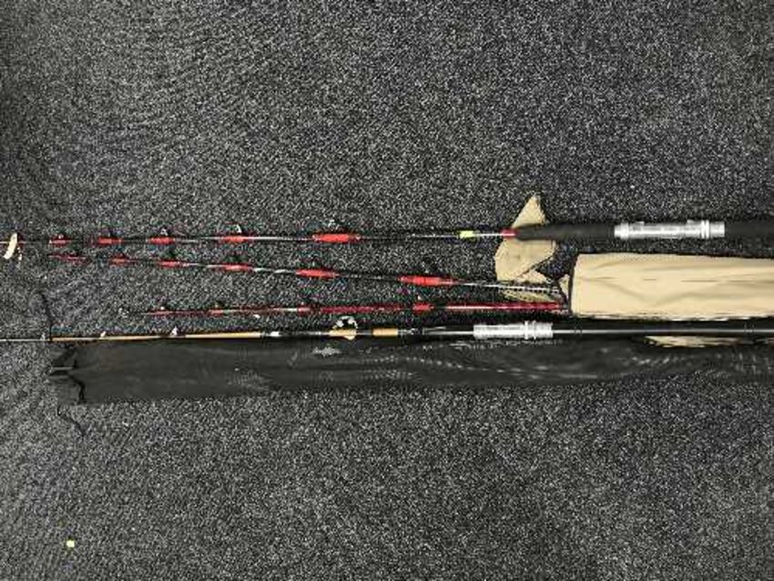 A Giant rod bag containing fishing rid stand and six assorted rods