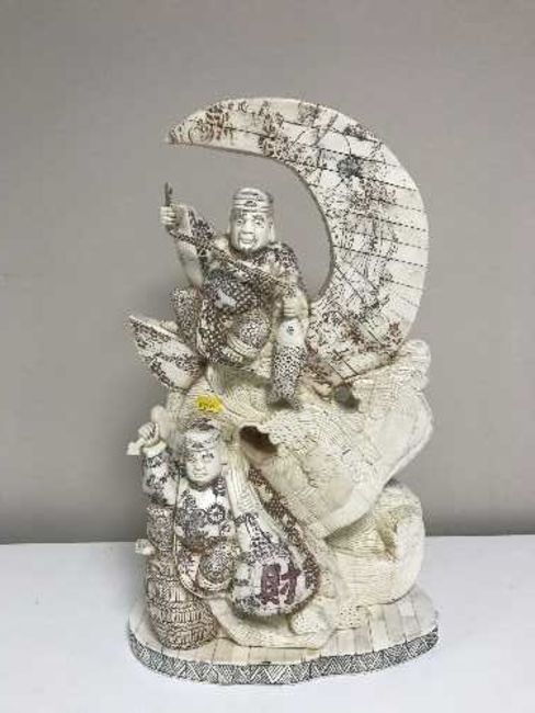 A large carved oriental figure - fisherman on waves