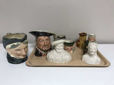 A tray of assorted character jugs inc. Royal Doulton Henry VIII D 6642, Grannie D 5521, Sylvac etc