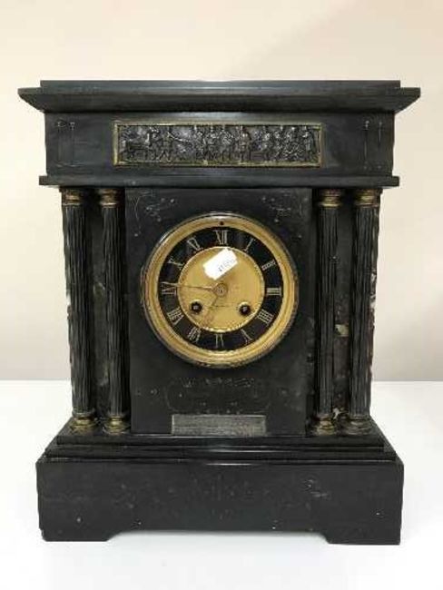 A Victorian marble mantel clock by H. Little of Lancaster