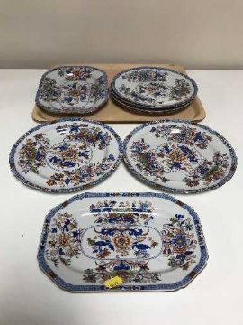 A tray of eight late 19th century Copeland Spode stone china plates