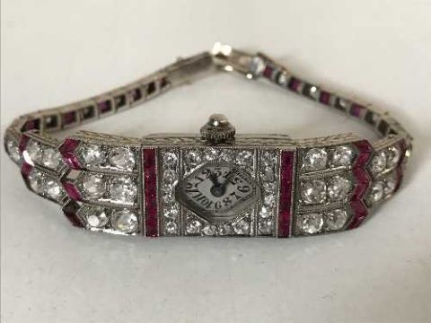 A superb quality ruby and diamond cocktail watch in platinum case, approximately 6cts of diamonds.
