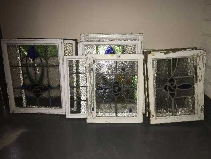 Ten framed leaded stained glass windows
