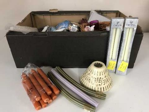 Three boxes of shells, candles, ornaments, Teddy bears, vases etc