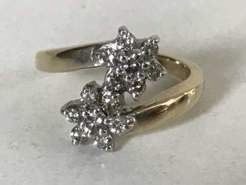 A 9ct gold diamond double cluster ring, approximately 0.5ct.