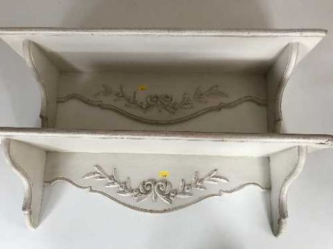 A pair of pine painted wall shelves