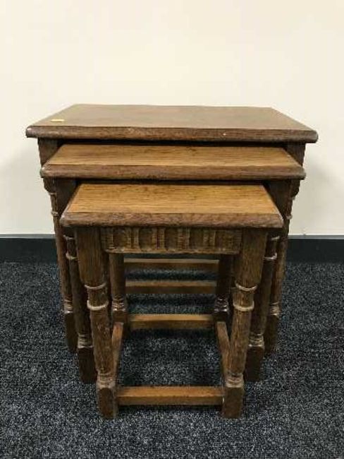 A nest of three oak tables