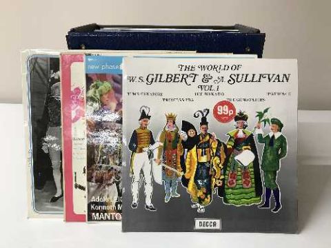A box and case of LP records and 78's inc. musicals, classical, Bobby Thompson etc