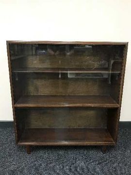 A mahogany sliding door bookcase