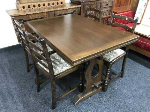 An oak refectory table and four ladder back chairs