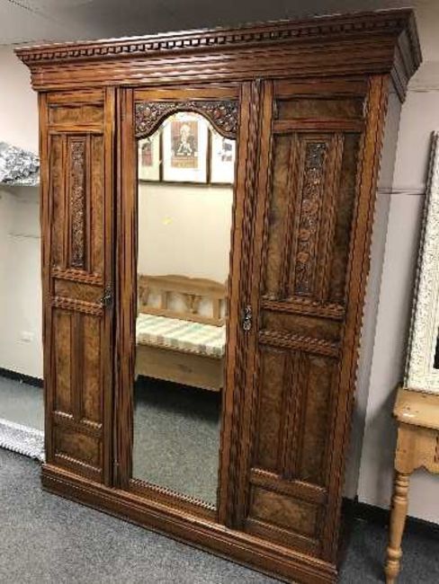 A late Victorian walnut mirror door wardrobe