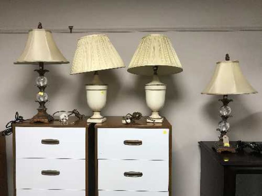 Two pairs of contemporary table lamps with shades