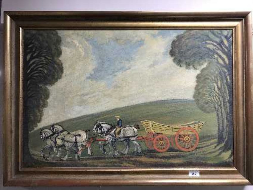 A gilt framed oil on canvas - figure on a horse drawn carriage