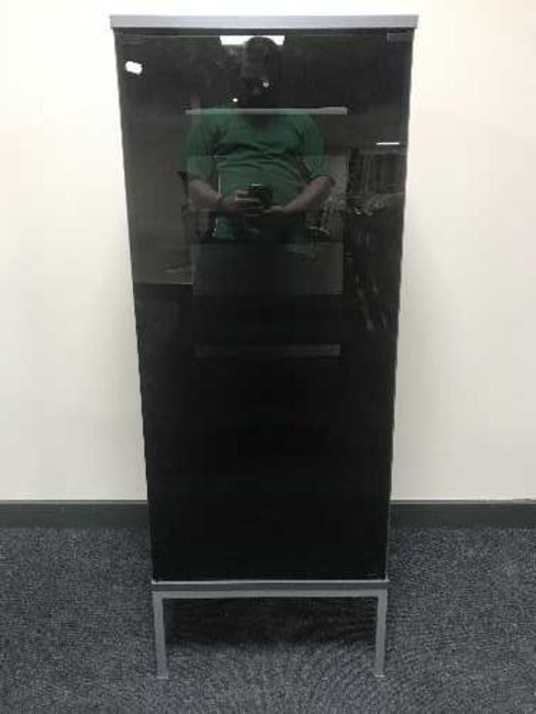 A glass door audio cabinet